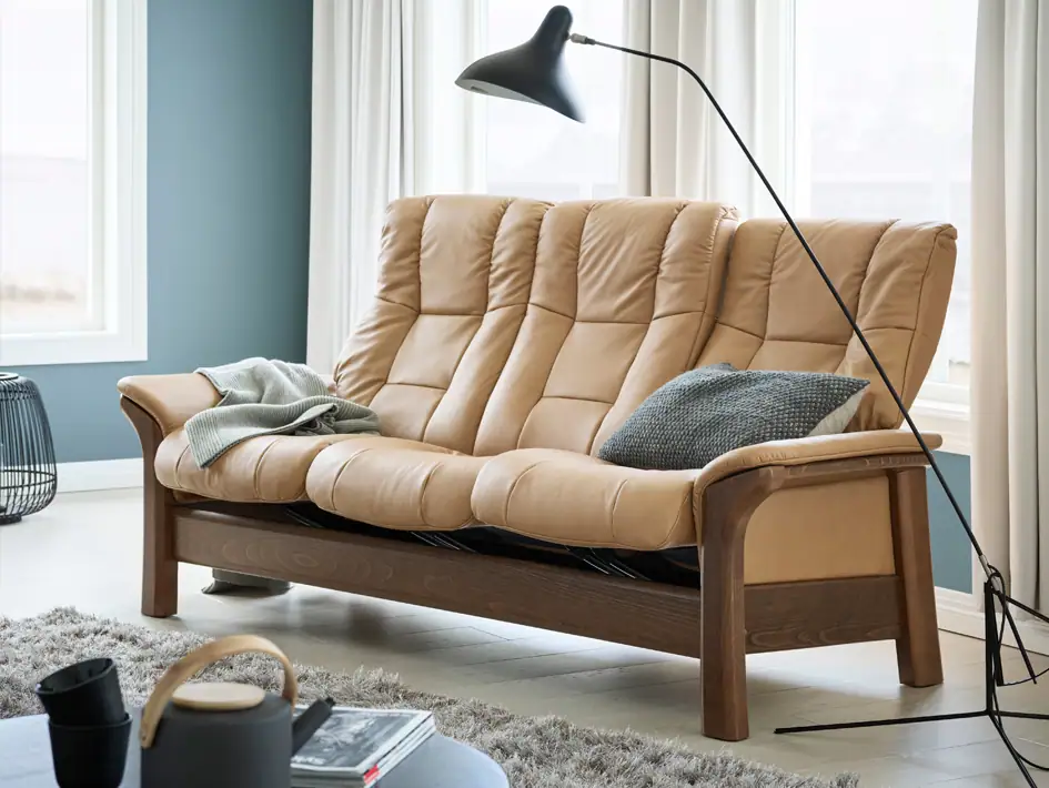 Select upholstery in fabric or leather. The Stressless® fabric collection is inspired by nature – offering you the possibility of creating a calm breathing space in the comfort of your own home. Many types of leather are on offer from the most exclusive and delicate to the more robust quality.
