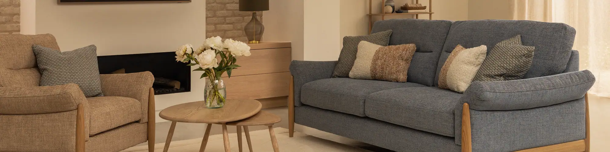 A beautiful modern collection featuring the elegantly curved solid-oak legs.