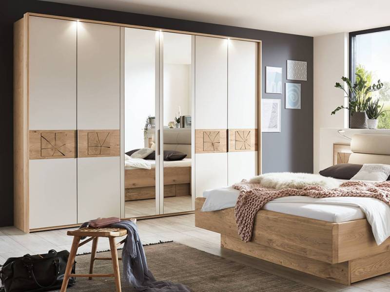 Be inspired by the Cello range of bedroom storage solutions. Designed in Germany and constructed from real wood veneer, a wonderful environmentally sustainable product, with many combinations to choose from. With a Cello wardrobe you will find a neutral colour in the lacquer sand and beautiful wood panels featuring cracked oak.