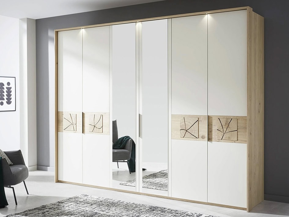 Be inspired by the Cello range of bedroom storage solutions. Designed in Germany and constructed from real wood veneer, a wonderful environmentally sustainable product, with many combinations to choose from. With a Cello wardrobe you will find a neutral colour in the lacquer sand and beautiful wood panels featuring cracked oak.
