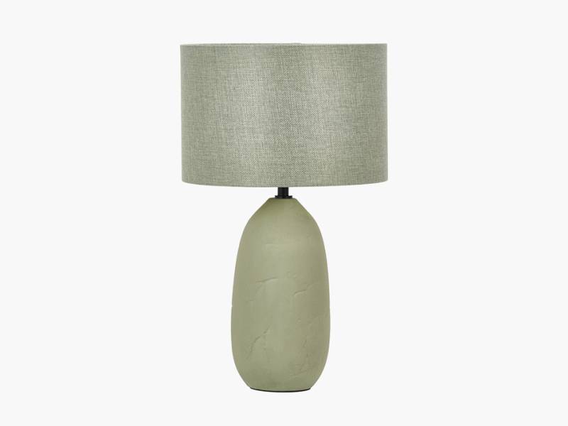A vintage texture ceramic table lamp in a sage colour palette.