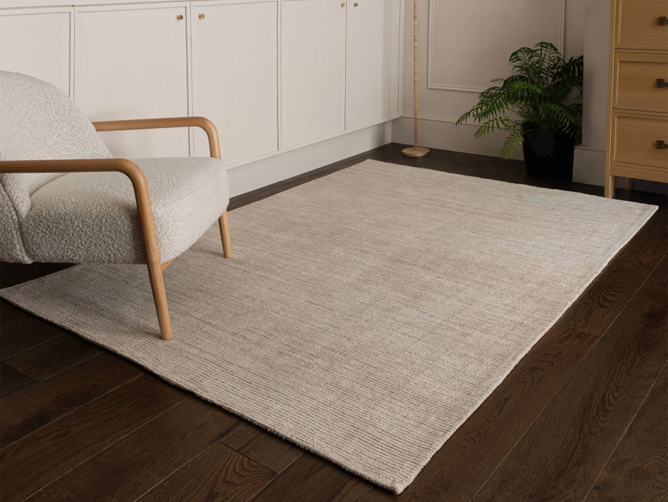 Handwoven in a durable low pile. A subtle ribbed effect is created using an alternation of loop and cut. The Hazy rugs are finished with tip-shearing for a softly distressed texture.