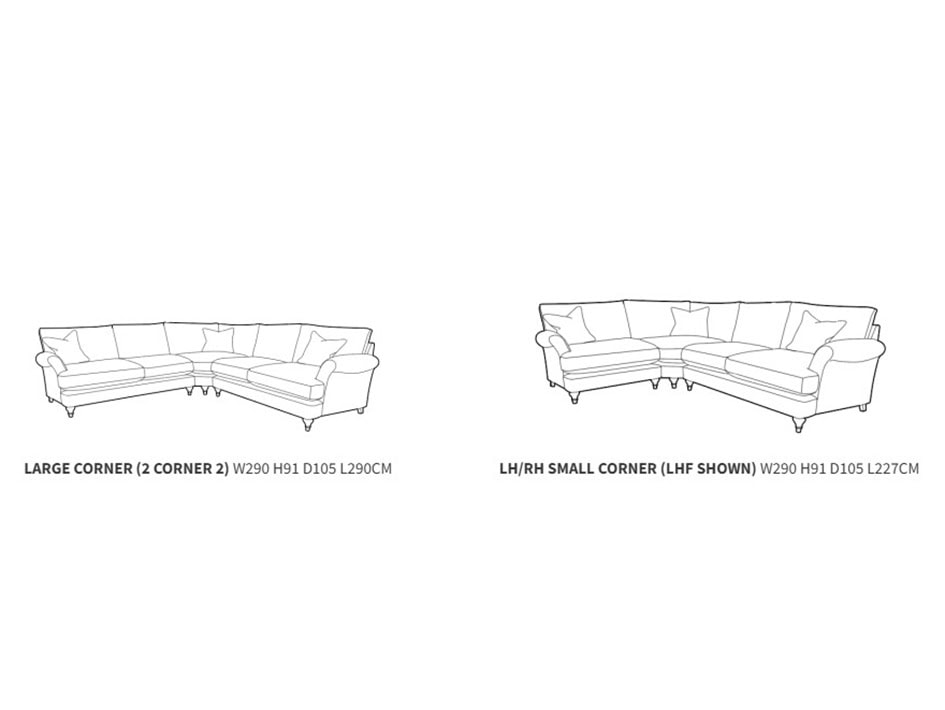 LH/RH Small Corner W 290 x H 91 x D 105 L 227cm